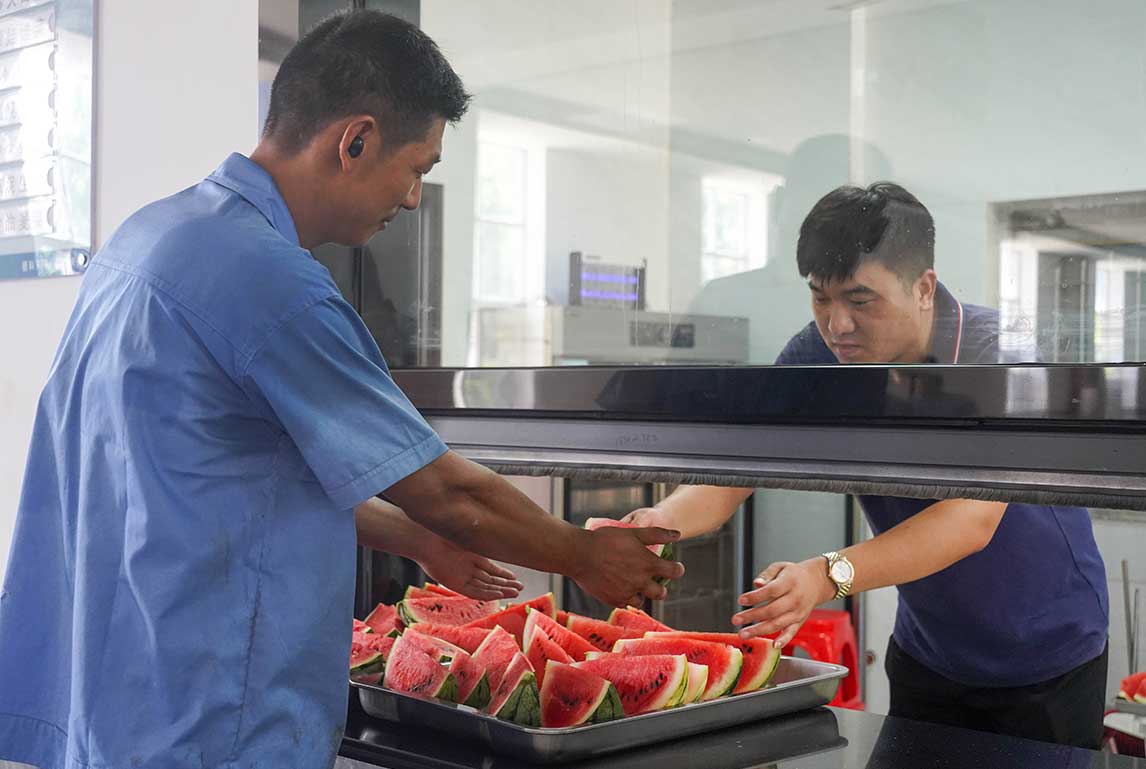 炎炎夏日送清涼,滴滴關(guān)懷暖人心。隨著氣溫的不斷升高,公司每天為員工準(zhǔn)備了清涼解暑的飲品和水果,在炎炎夏日給員工帶來絲絲清涼。
