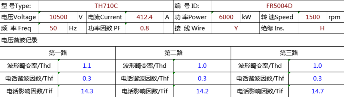 經(jīng)嚴格測試,該6MW高、低壓同軸發(fā)電機波形畸變率(THD)實測穩(wěn)定≤1.1%,遠優(yōu)于<5%的國際標準,各項性能指標均達到國際先進水平。