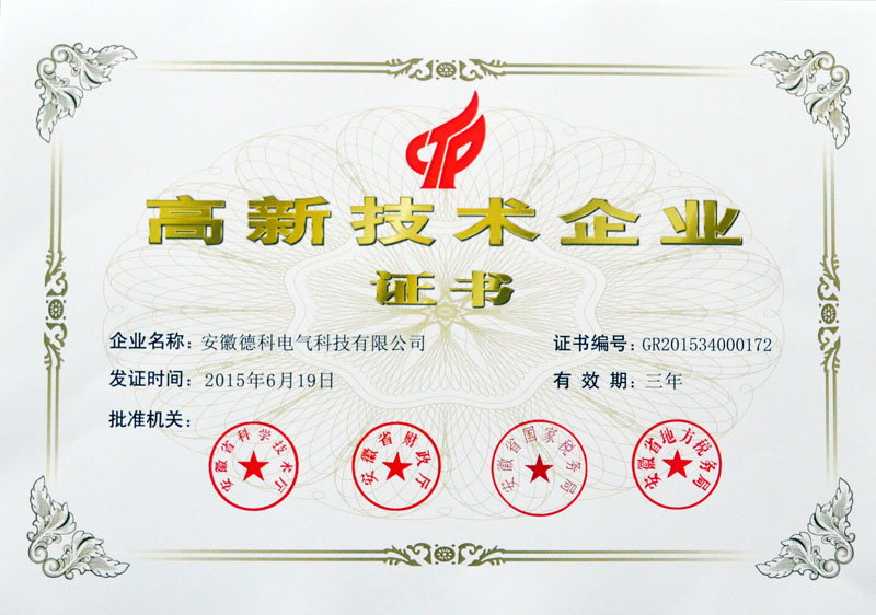2015年11月,根據(jù)《高新技術(shù)企業(yè)認定管理辦法》和《高新技術(shù)企業(yè)認定管理工作指引》的相關(guān)規(guī)定,我公司被認定為國家級高新技術(shù)企業(yè),并于近日收到了由安徽省科學技術(shù)廳、安徽省財政廳、安徽省國家稅務局、安徽省地方稅務局聯(lián)合頒發(fā)的國家高新技術(shù)企業(yè)認定證書,證書編號為GR201534000172。